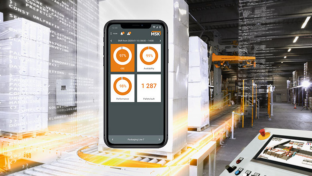 Die benutzerfreundliche App für Smartphone oder Tablet bietet schnell und überall einen Status der verpackten Paletten bzw. Produkte in Echtzeit, ohne sich vor Ort an der MSK Anlage zu befinden.