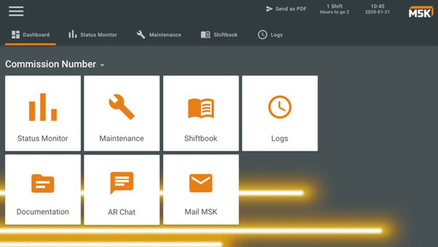 Das digitale MSK service Pad optimiert Wartung, Reparatur und Ersatzteilversorgung. Mit digitaler Unterstützung via Kamera-, Video- und Chatfunktion sowie digitalen Dokumenten werden Kommunikation und Support rund um die MSK Anlage effizienter.